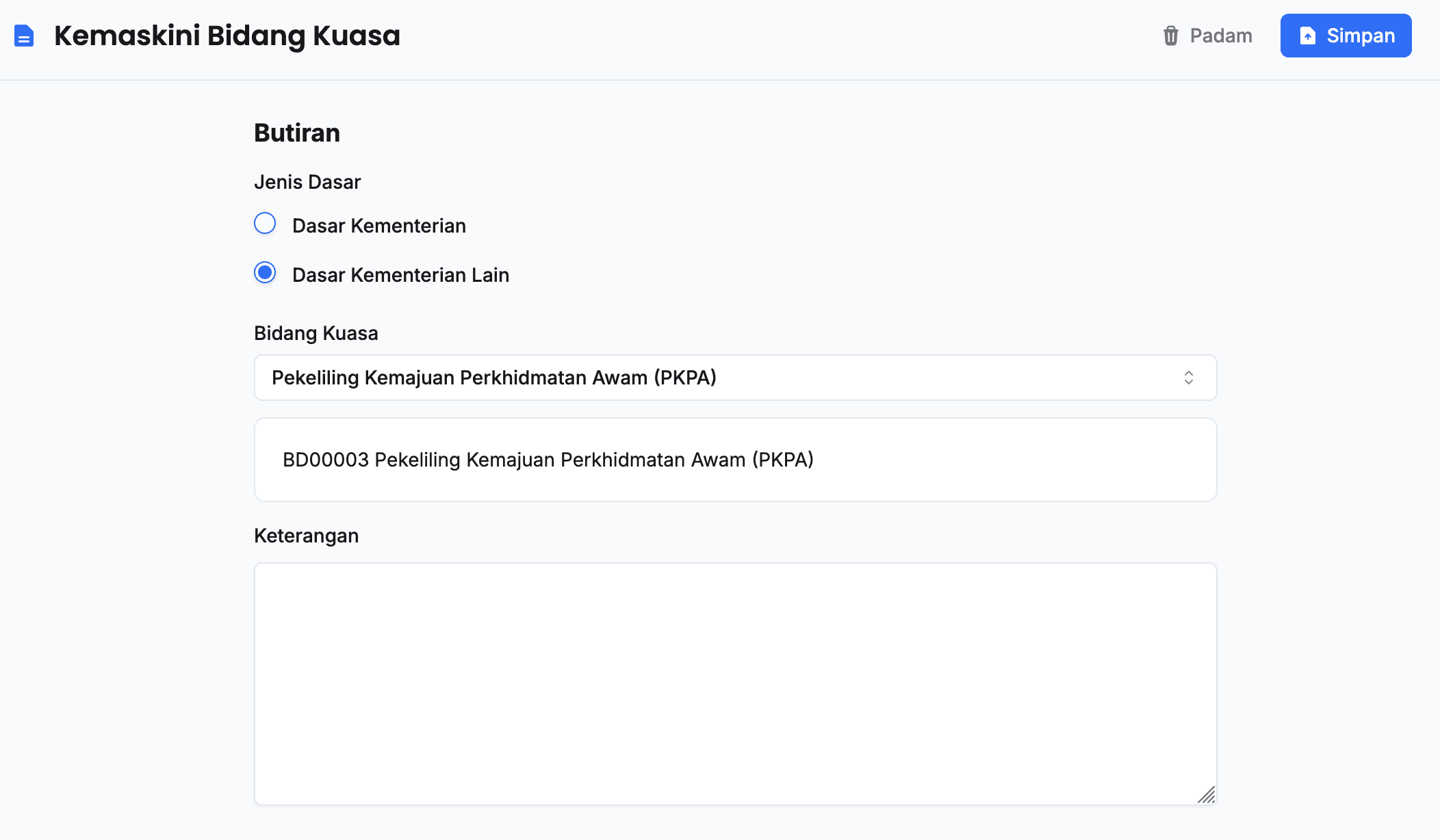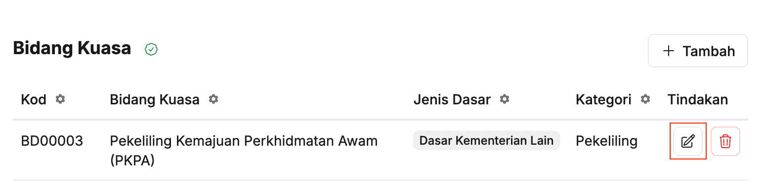 - Pastikan maklumat bidang kuasa yang berkaitan telah dikemaskini