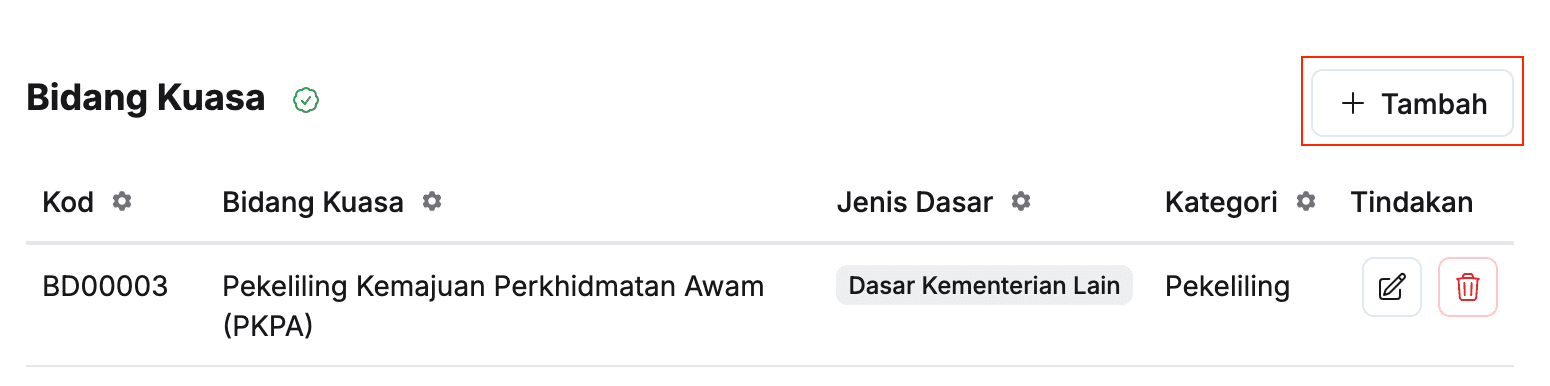 - Klik butang + Tambah pada sudut kanan tajuk Bidang Kuasa