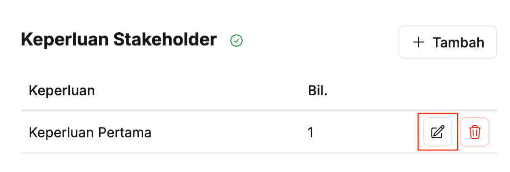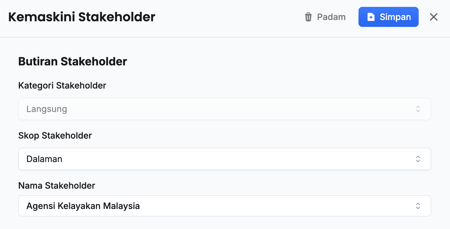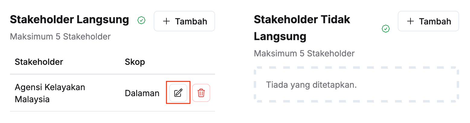 - Klik butang Kemaskini pada sudut kanan stakeholder yang berkaitan
