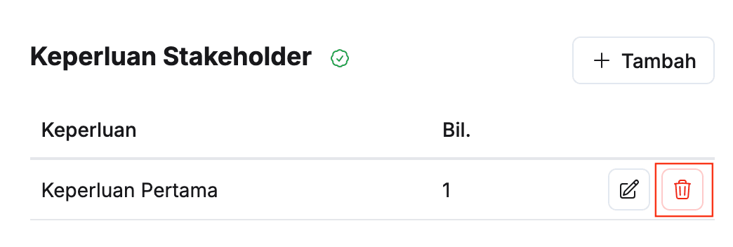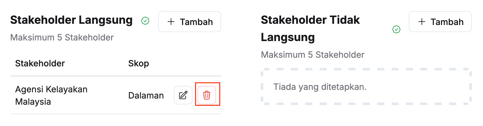 - Klik butang Padam pada sudut kanan stakeholder yang berkaitan