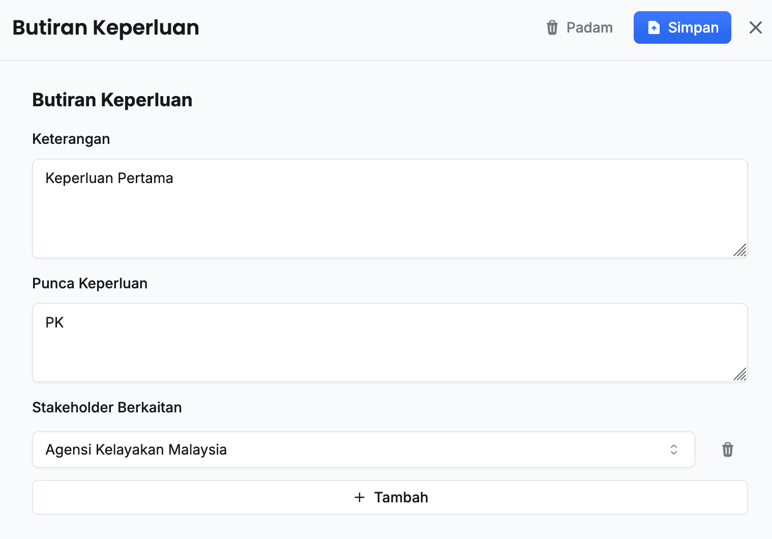 Tambah Stakeholder
