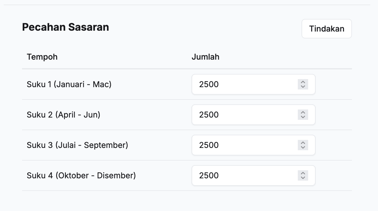 - Kemaskini maklumat Pecahan Sasaran menggunakan kaedah-kaedah berikut:
