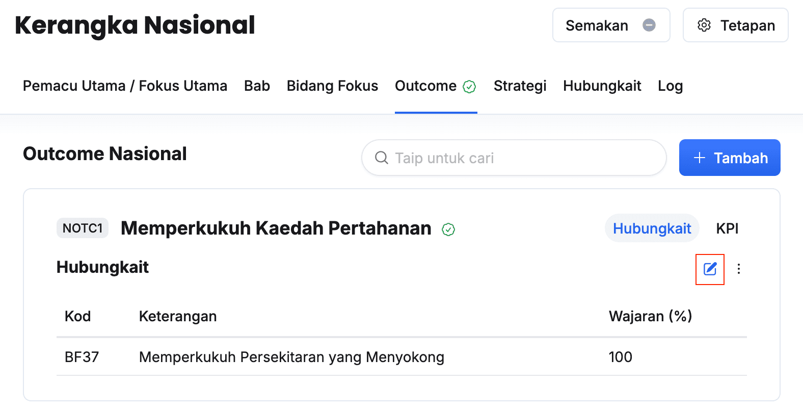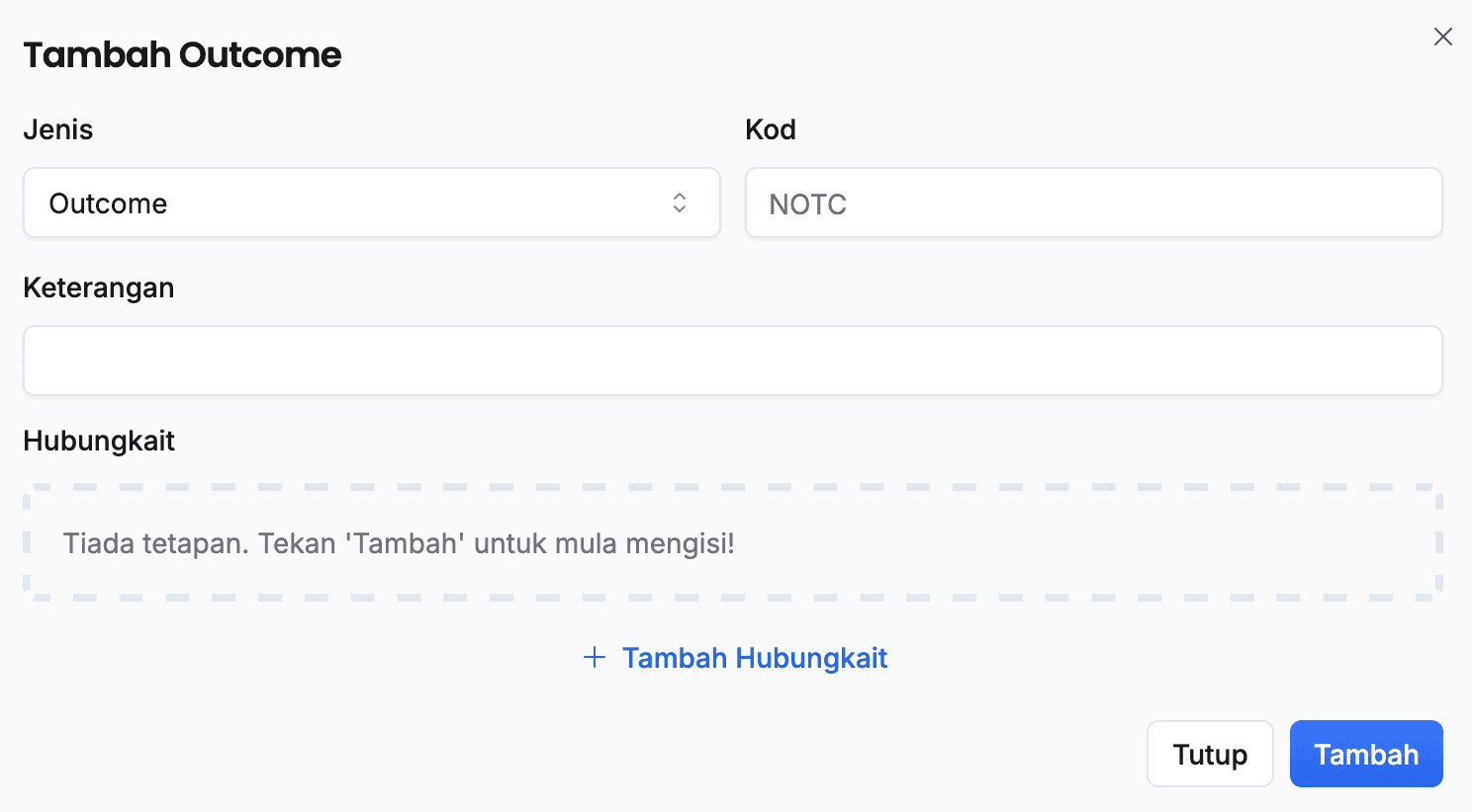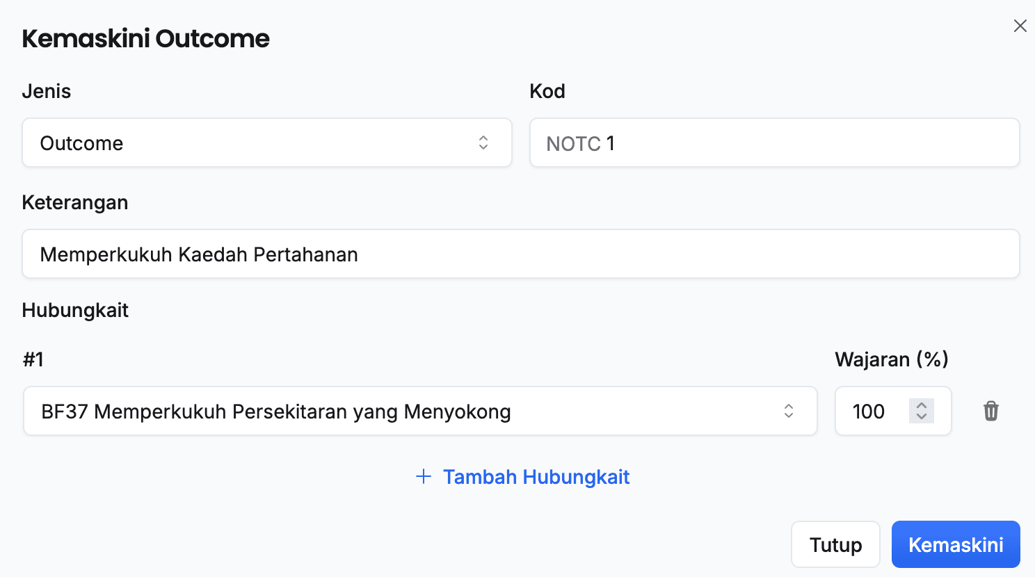 - Pastikan maklumat outcome yang berkaitan telah dikemaskini