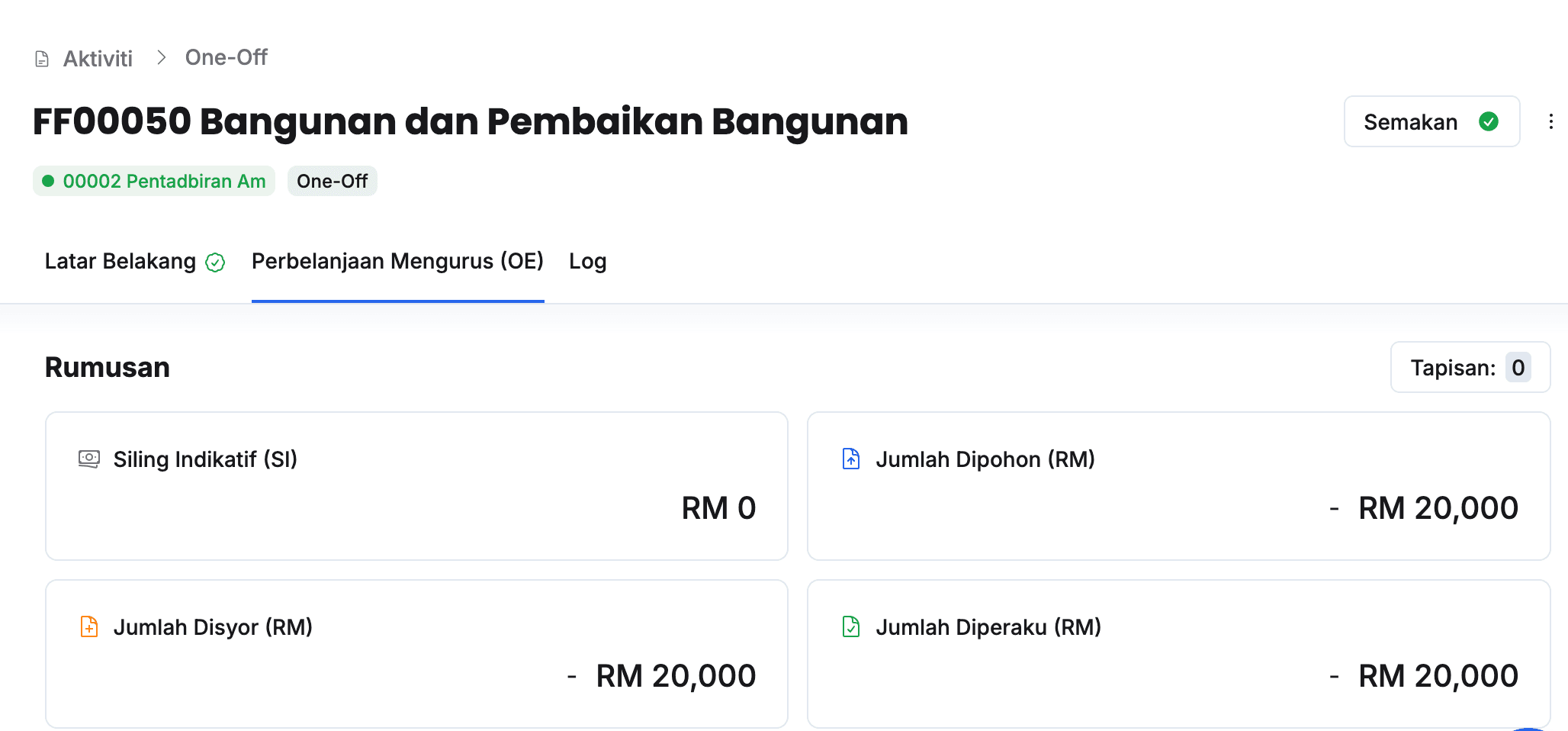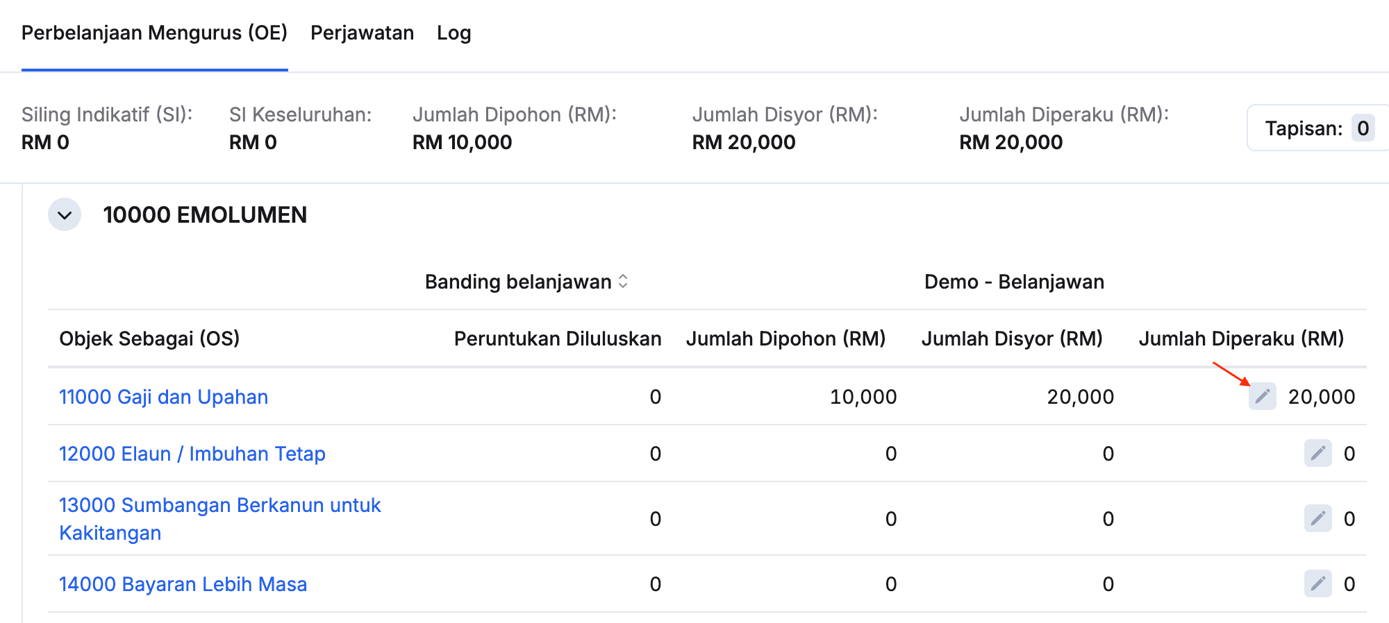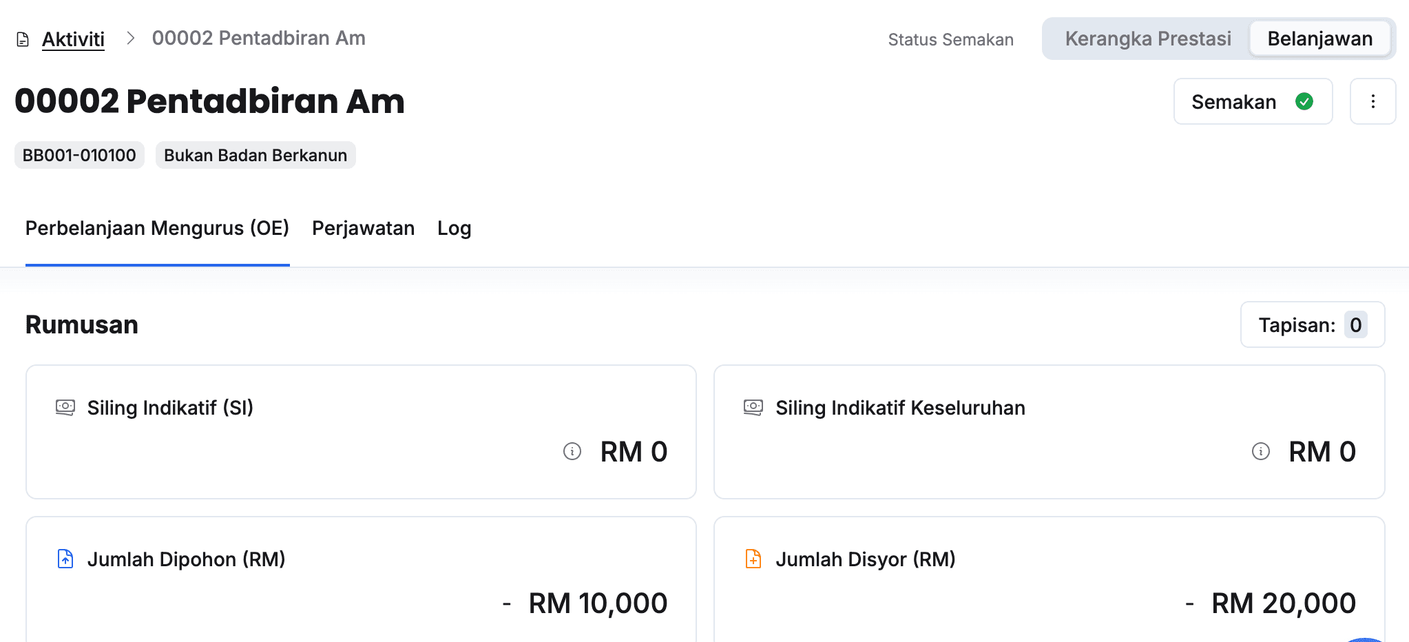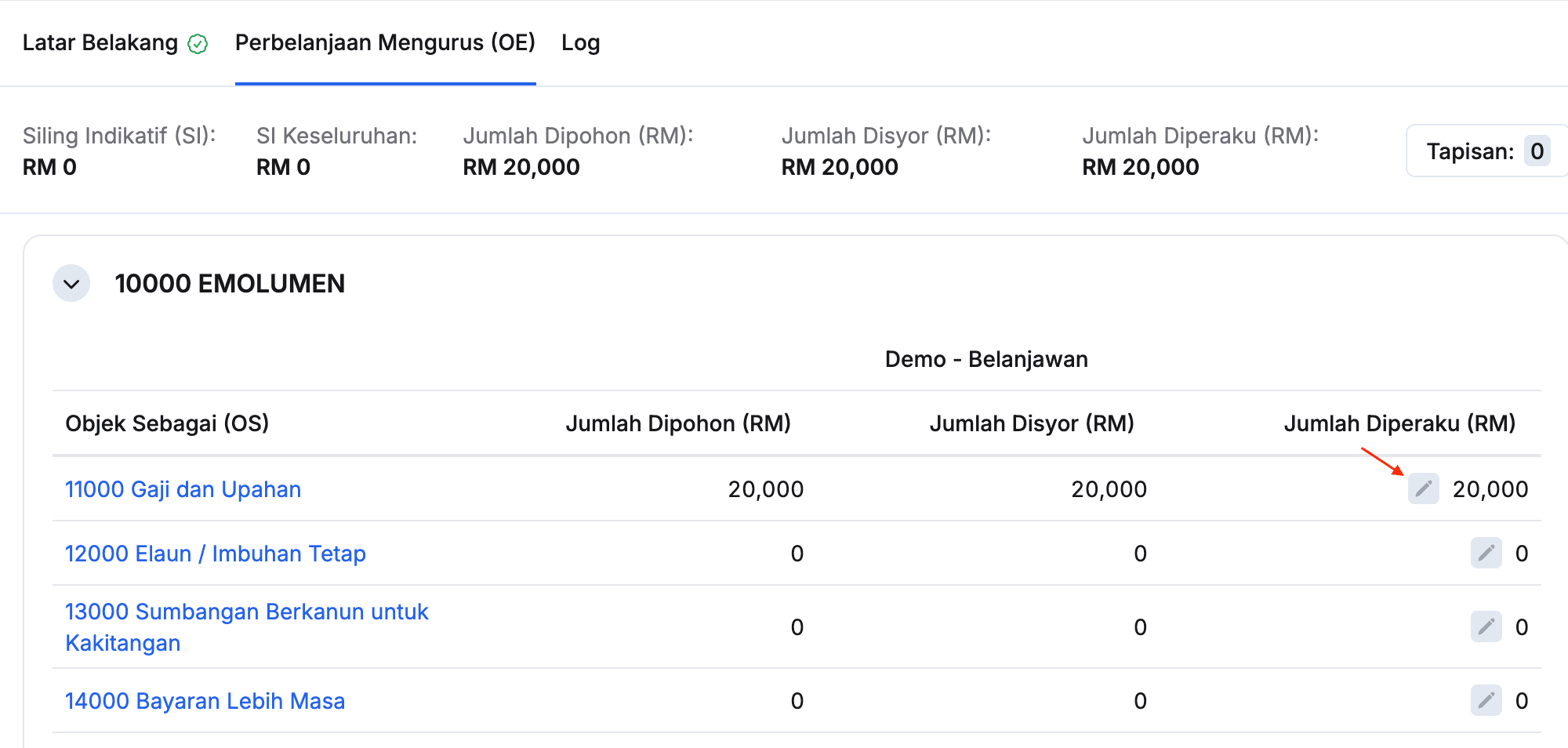 - Klik pada tab Perbelanjaan Mengurus (OE)