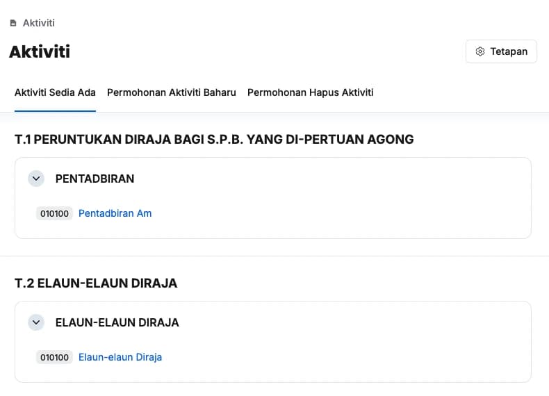 Contoh Halaman Pilihan MP/Program/Aktiviti