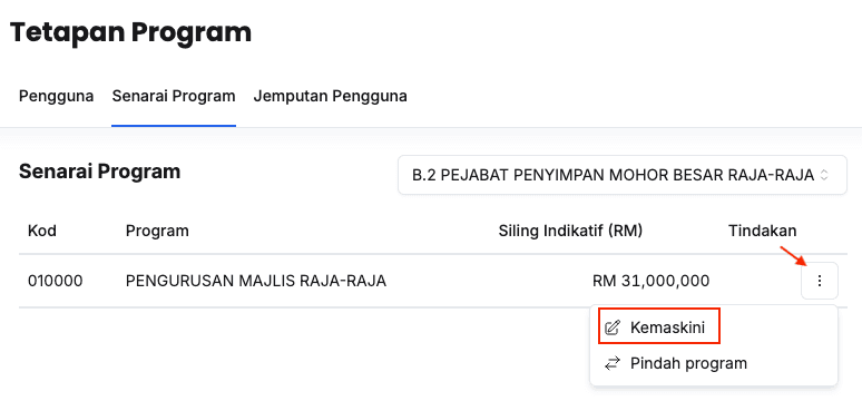- Pastikan butiran program yang berkaitan telah dikemaskini