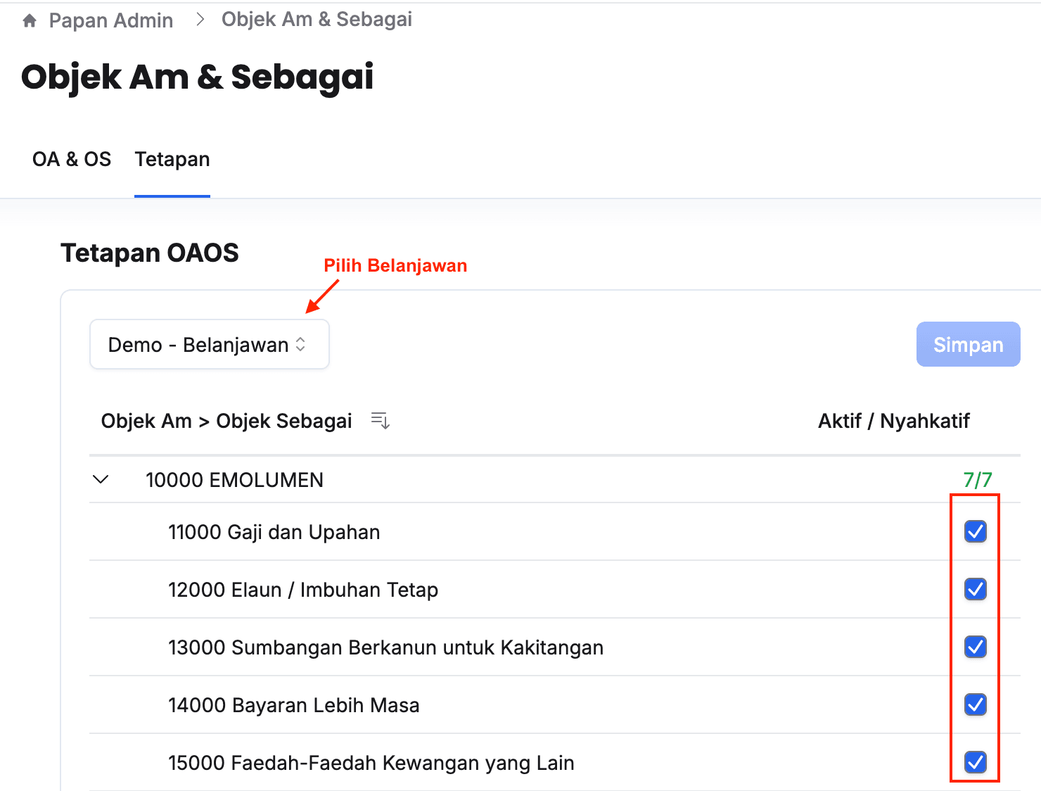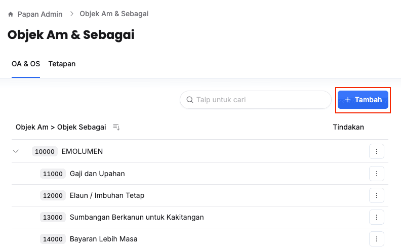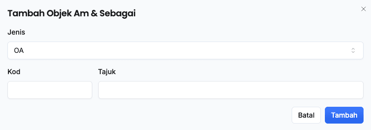 - Pastikan objek am / objek sebagai baharu telah tersenarai