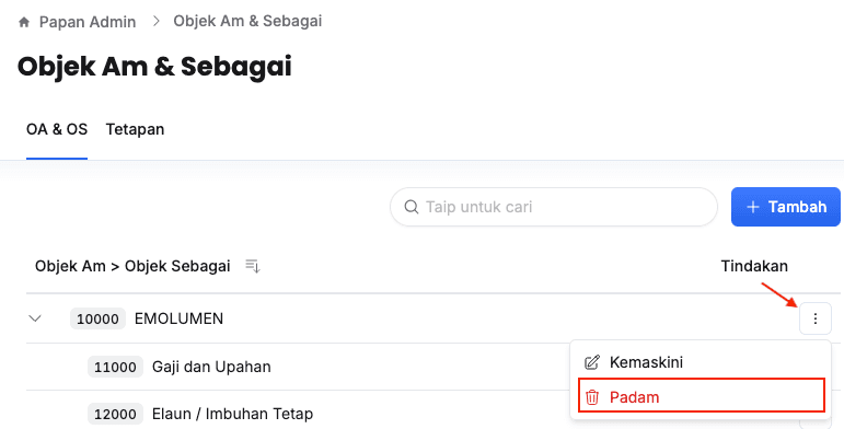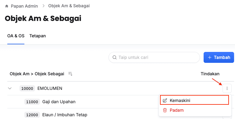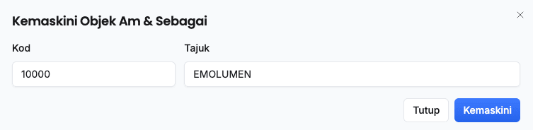 - Pastikan butiran objek am / objek sebagai yang berkaitan telah dikemaskini