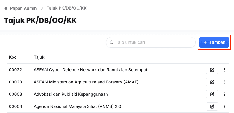 Tajuk aktiviti baharu berjaya ditambahkan dan sedia untuk dimasukkan kepada aktiviti yang berkaitan dalam proses perancangan bajet