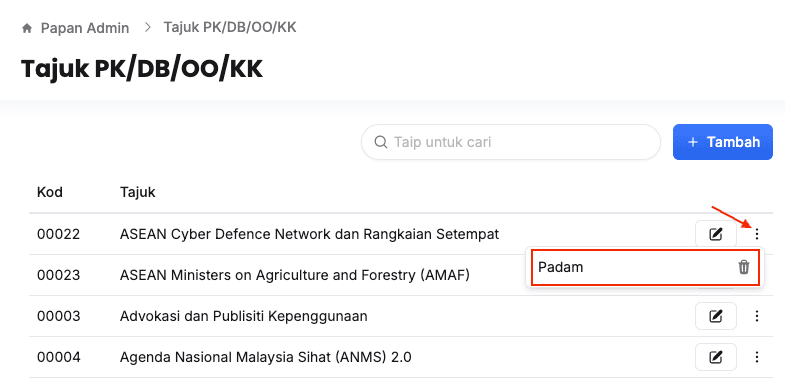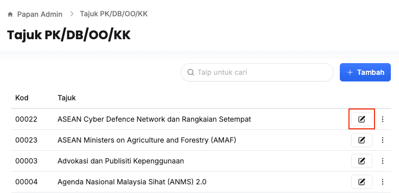 - Klik butang Kemaskini pada sudut kanan tajuk aktiviti yang berkaitan